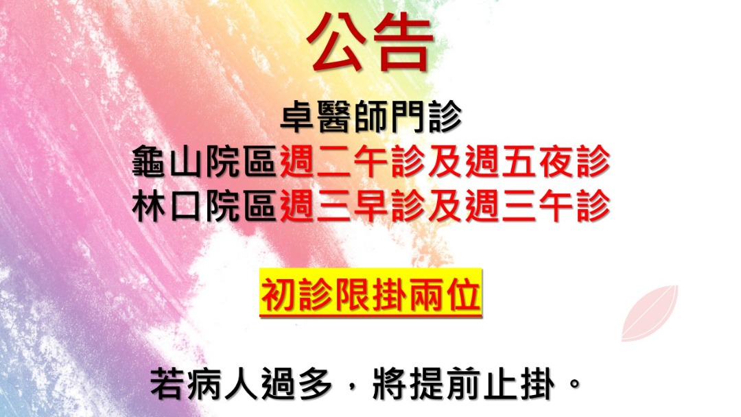 114年雙十連假 龜山及林口院區正常門診