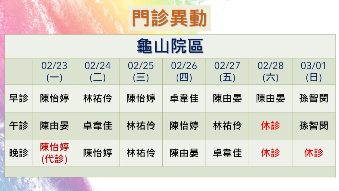 鳳凰颱風襲台,兩院區目前皆正常看診